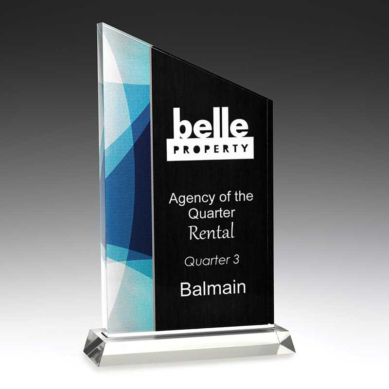 The Vivid series of acrylic present fresh and appealing designs for your award presentation. Your engraving will standout brilliantly with the various colour schemes. Range of colours and all available in presentation gift boxes.